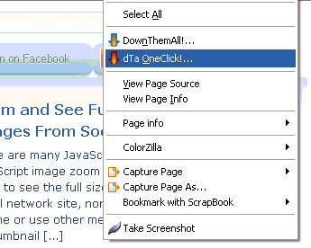 - If you want to download all the files in a page , right click and select “dTa OneClick” or “DownThemAll“. This will start all the downloads.