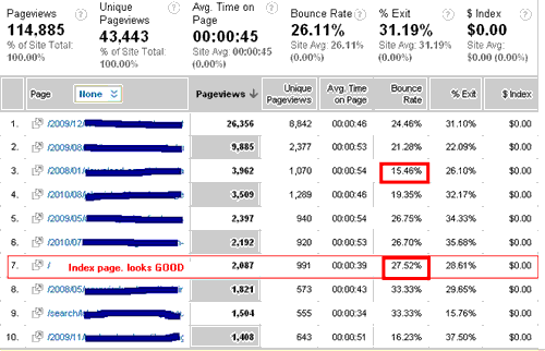 Bounce Rate is an important parameter in Google Analytic traffic analysis.As we discussed If you have high bounce rate on the index page this means that people are not finding what they need on it and leave the site alltogether.
