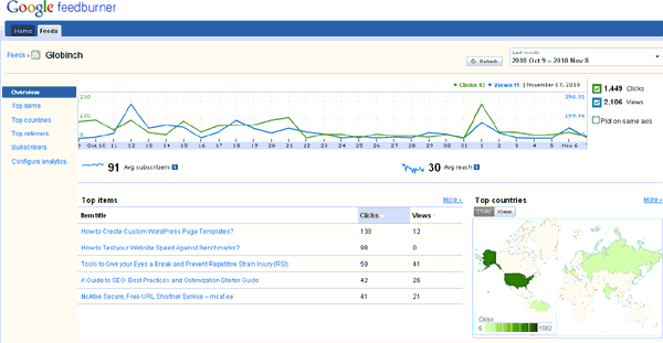 ( The above Globinch Feedburner RSS Feed Statistics Tool gives you an easy interface to get all the feedburner RSS feed stats including circulation, reach, downloads and hits of your blog’s feedburner RSS feed.)
