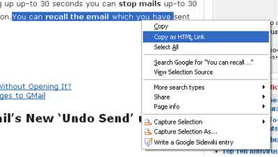 This is one of the most useful add-on available for Firefox to copy the text as HTML link from any web page.Copy As HTML Link does exactly what its name reflects.