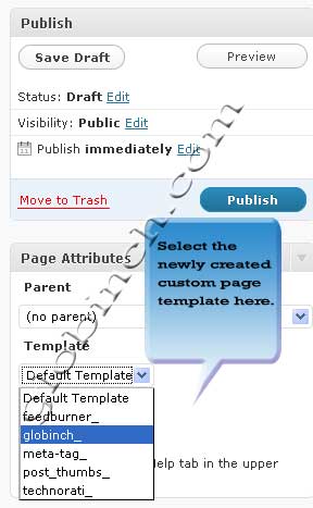 So whenever you want to create a new page in wordpress admin page, just select your unique template that suites your need. It is easy to create a custom page template in wordpress. Most of the pages in this blogs are created using custom page templates. For example the Thumbnail Based Post Archives page is based on a custom page template.