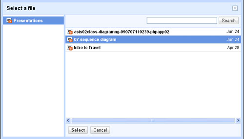 - Click on Choose the presentation button. This will open a window showing all your presentations you uploaded to your Google Docs.
