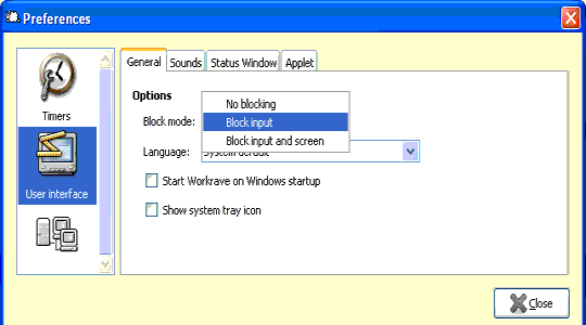 Workrave has many configurable features including the block mode where you can configure block mode as no blocking, block input, block input and screen.
